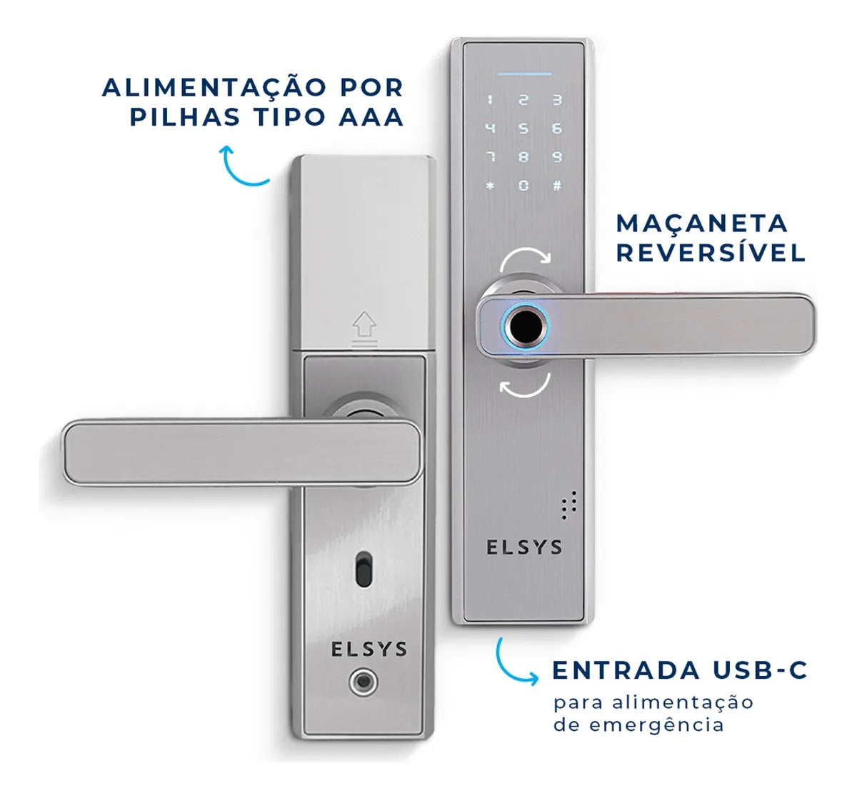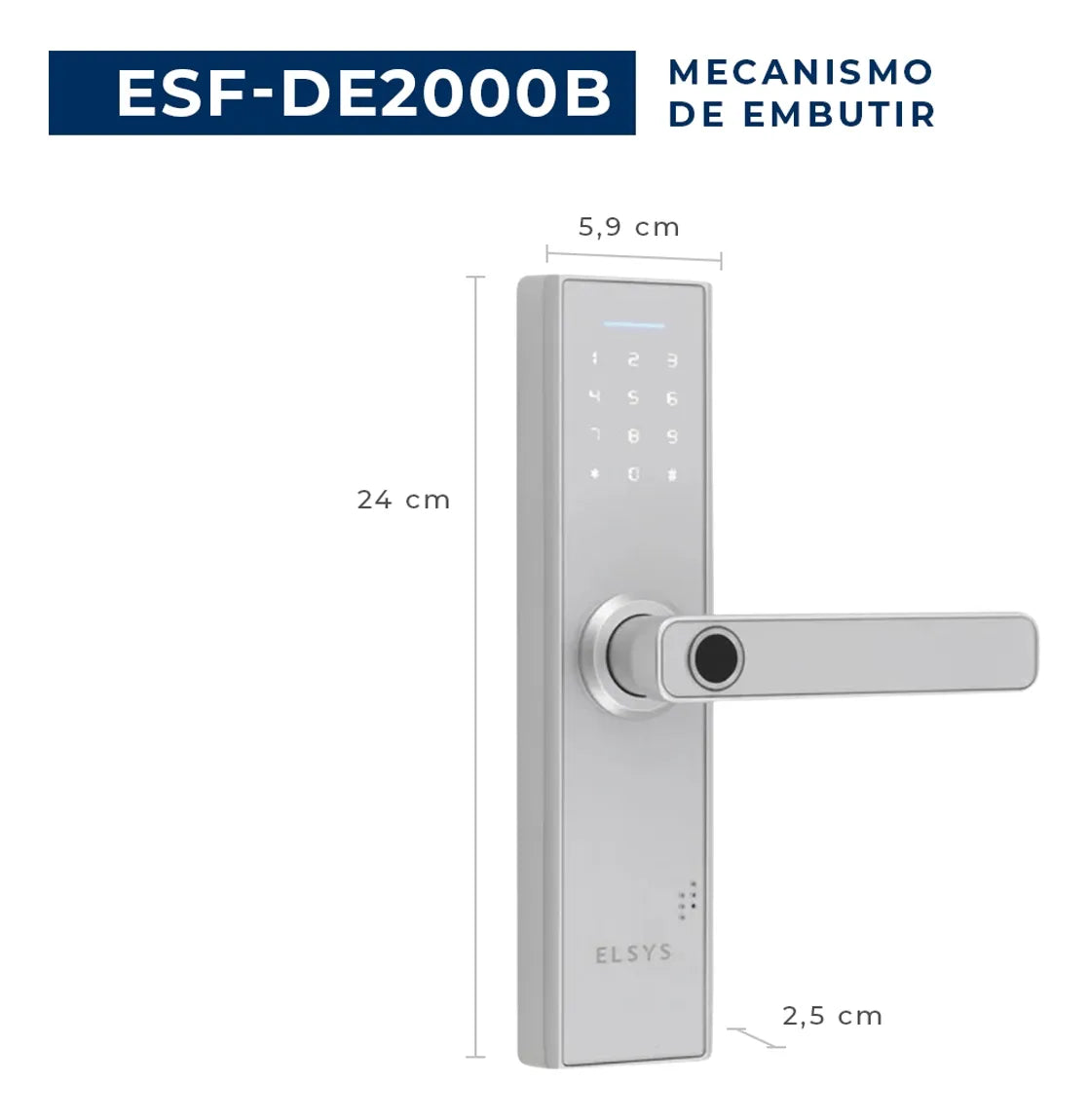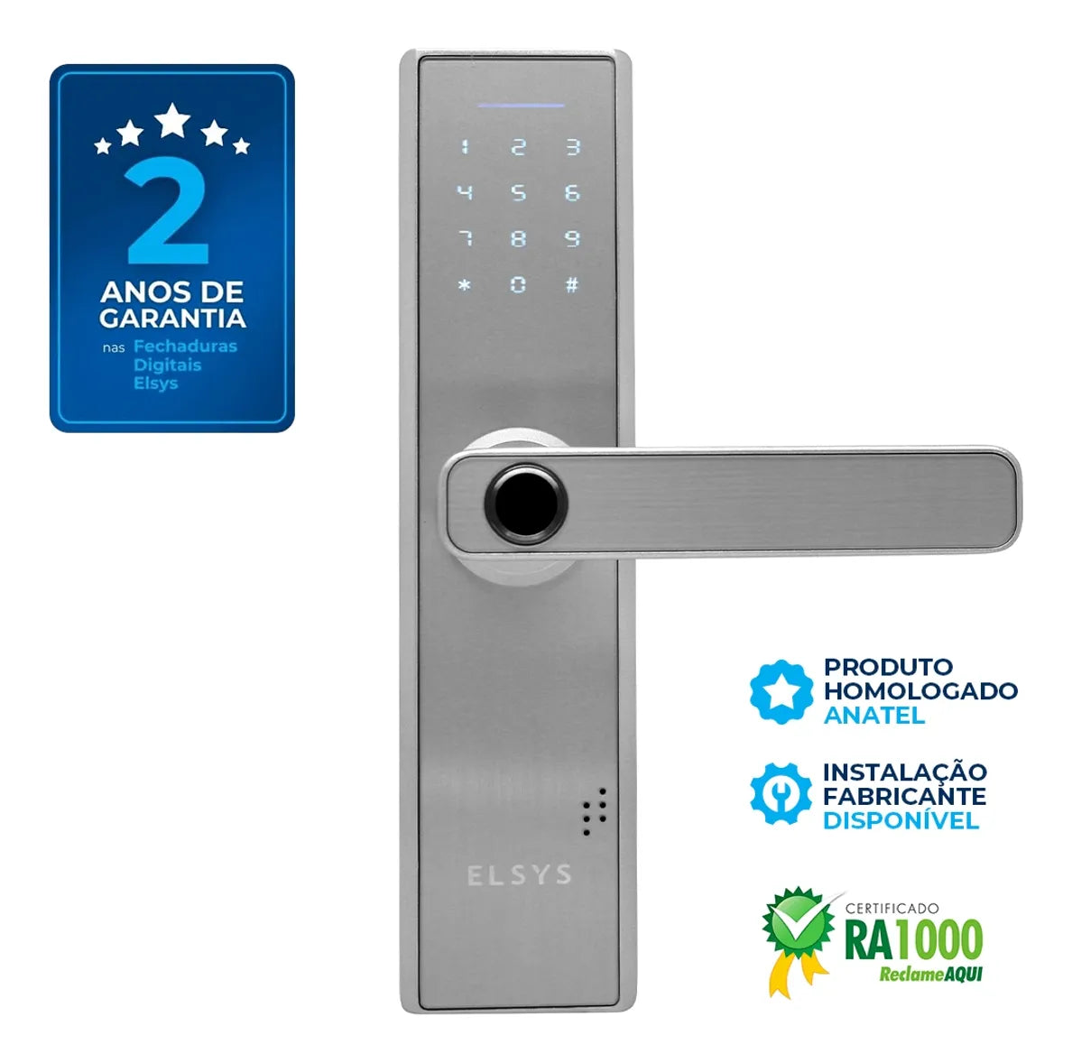 Fechadura Digital com Biometria, Elsys,ESF-DE2000B - Prata