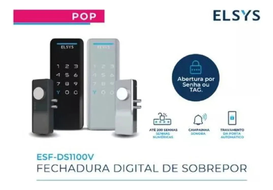 Fechadura Digital de Sobrepor ELSYS, Com Senha, Preto