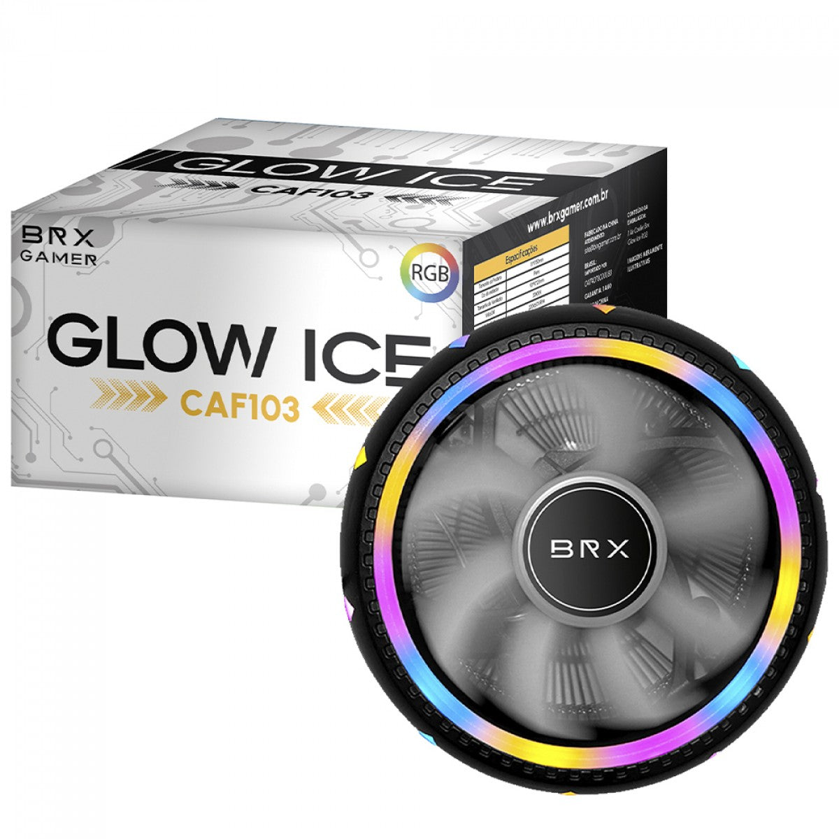 COOLER PARA PROCESSADOR BRX GLOW ICE CAF103, RGB, 90MM, INTEL-AMD, PRETO